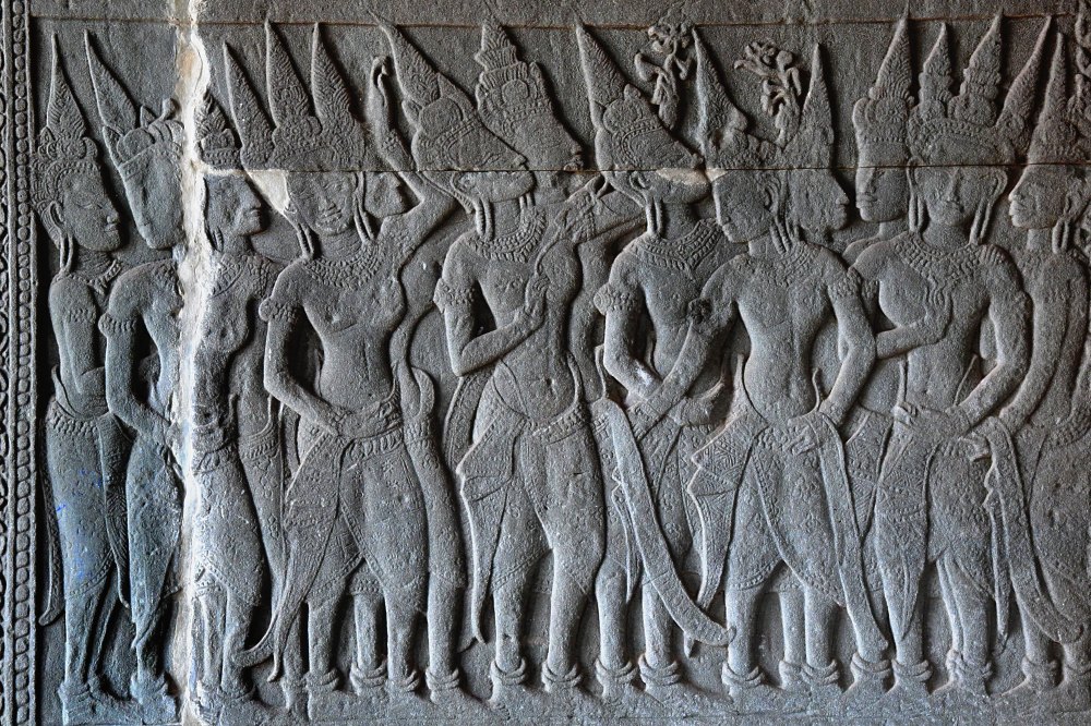 On assiste tour à tour à la bataille de Kurukshetra, à l'avancée de l'armée de Suryavarman, à la représentation du ciel et de l'enfer.