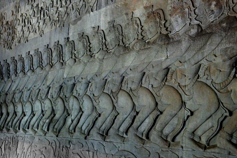 Les asura ou démons, à la bouche lippue et tombante sont placés à la tête du nagaraja, le roi des serpents.