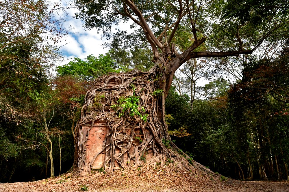 Figuier étrangleur. Comme pour le lierre chez nous, la question sans réponse est de savoir s'ils protègent les constructions ou les détruisent.