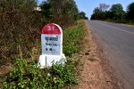 Nous allons vers le nord. Le réseau routier n'est pas dense mais les voies principales sont en bon état. Les pistes de terre rouge qu'on doit aussi emprunter le sont également mais parce que nous sommes à la saison sèche. Elles seraient impraticables pendant la mousson. Les bornes kilométriques se succèdent, parfois tous les 50m. La raison : il y a une borne par ville à venir avec la distance qui vous en sépare.