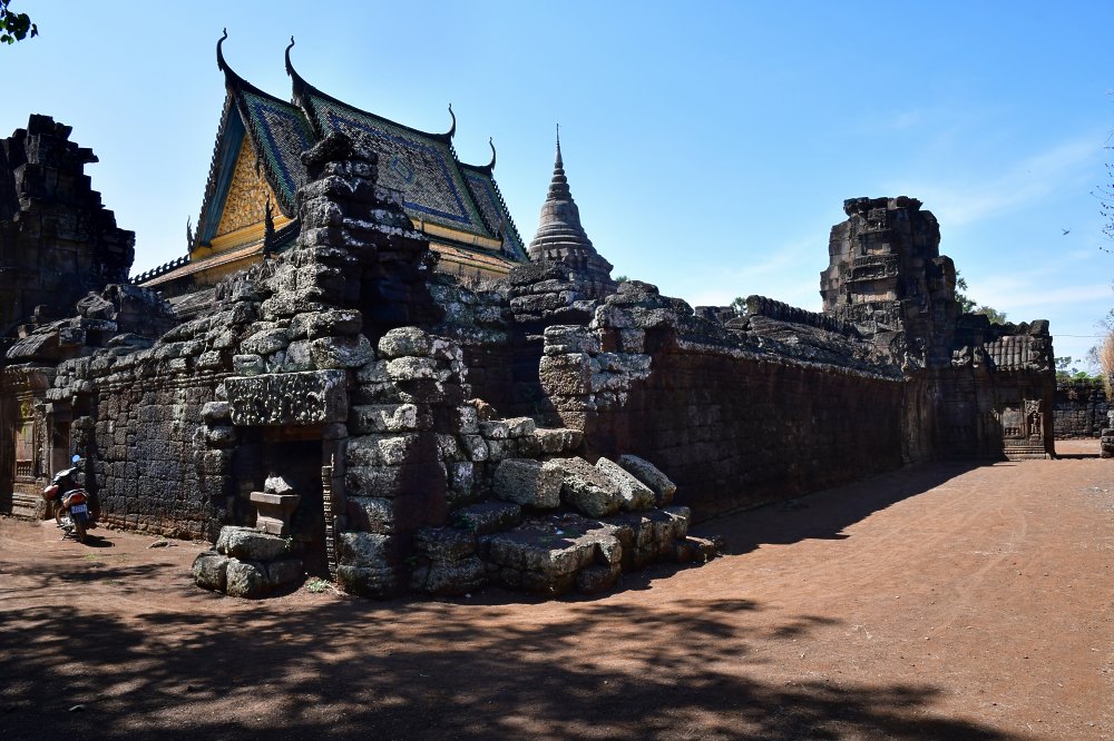 La pagode moderne, aux toitures emboîtées de tuiles vernissées oranges, bleues et vertes a été bâtie à l'époque du protectorat français.