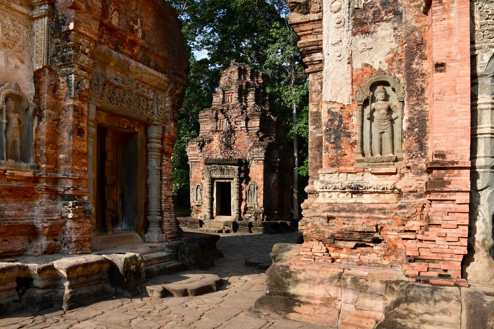 Eclairés par le soleil du matin, ce groupe échappe à l'invasion des touristes.