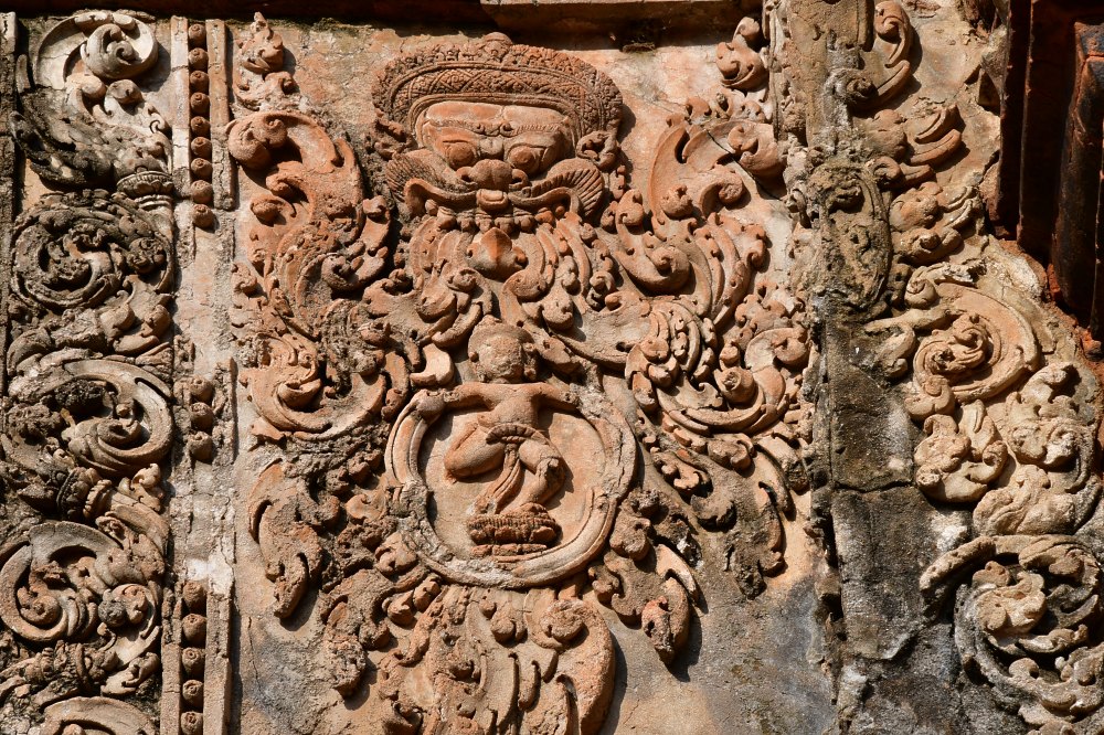 Autre kala. De sa gueule sortent des guirlandes végétales entourant un petit personnage dansant.