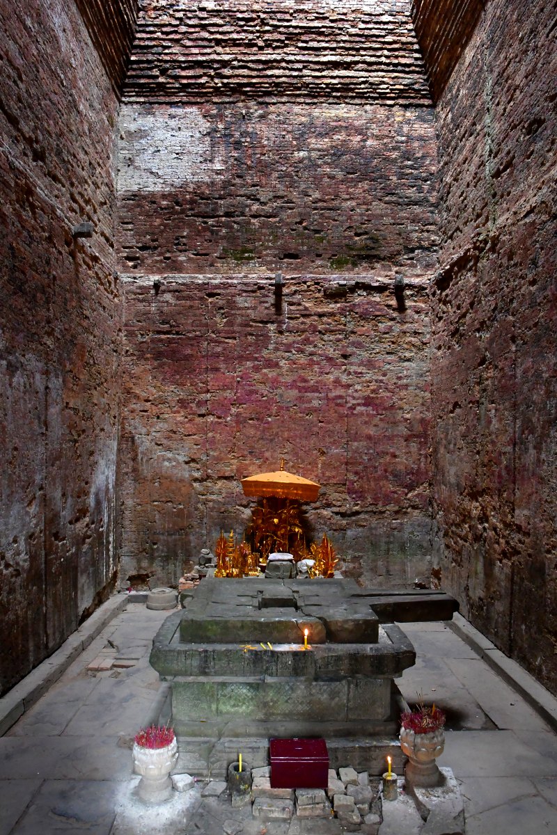 Du linga situé dans le sanctuaire, il ne reste que la partie féminine, le yoni. Cela n'empêche pas les fidèles de venir faire des offrandes.