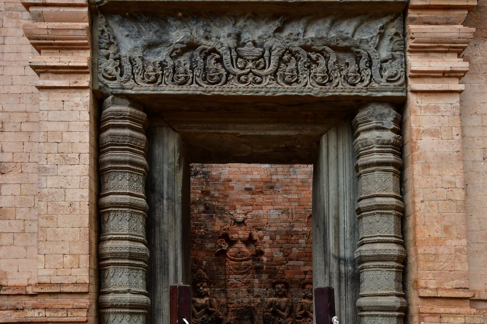 Le linteau sculpté de la porte de la tour principale. Le site a été très restauré.