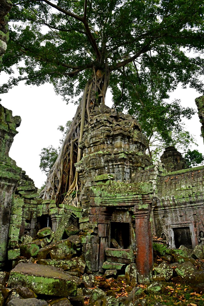 On ne sait plus qui sert de soutien à l'autre, l'arbre ou le temple?