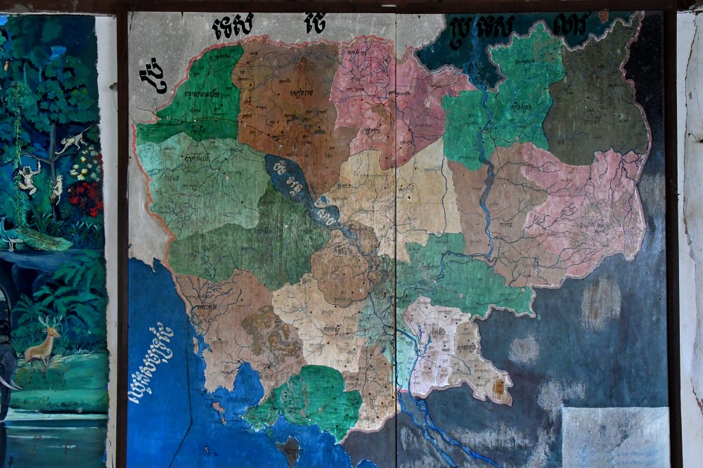 Carte du Cambodge. A gauche, le bord d'une scène de jungle.