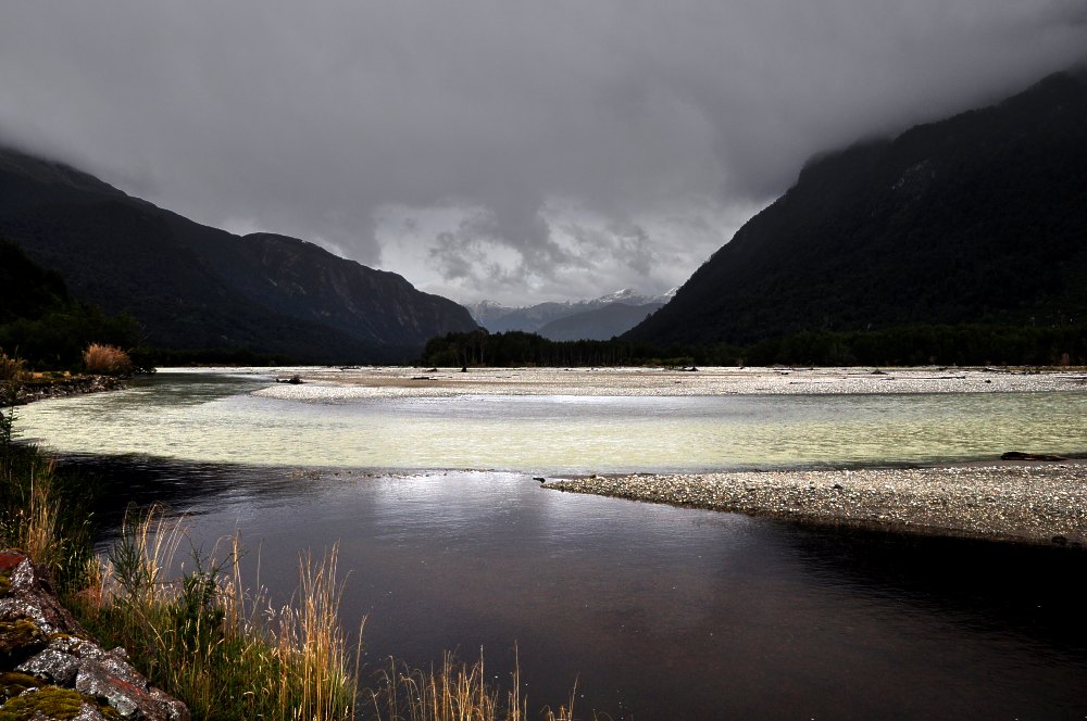 Les rivières puissantes qui dévalent des Andes vers le Pacifique s'étalent parfois dans d'anciennes vallées glaciaires.