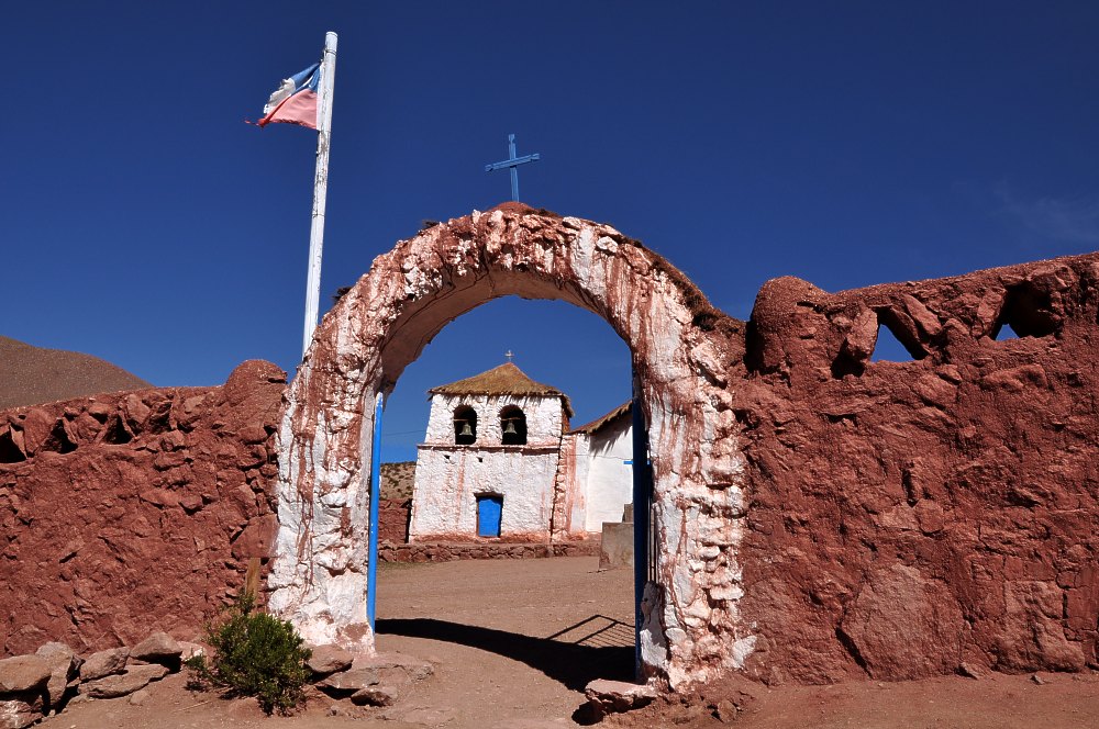 L'église de Machupo, dans le désert d'Atacama, non loin des geysers de El Tatio.
