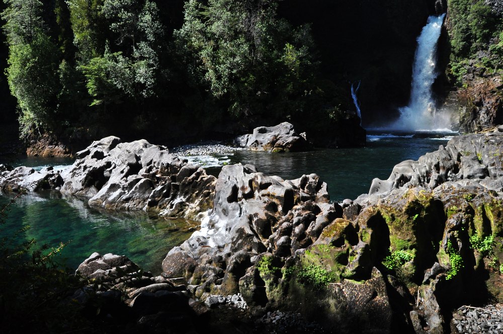 La rivière Huilo Huilo se déverse dans des bassins aux eaux limpide et fraîches.