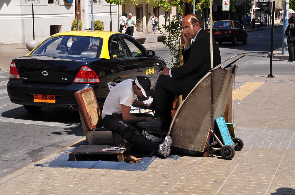 Beaucoup de Chiliens survivent en faisant des "petits boulots", comme les cireurs de chaussures.
