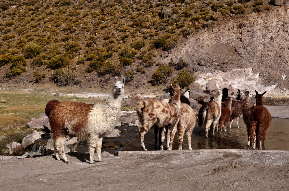 Comment faire la différence entre les vigognes, les alpagas, les guanacos et les lamas ? La théorie ne sert pas à grand chose mais elle est la suivante : le lama et l’alpaga sont des camélidés domestiques, les vigognes et les guanacos sont sauvages. Les vigognes sont graciles, les alpagas sont massifs. Les lamas sont grands. Les guanacos sont grands également mais en plus, ils le savent.