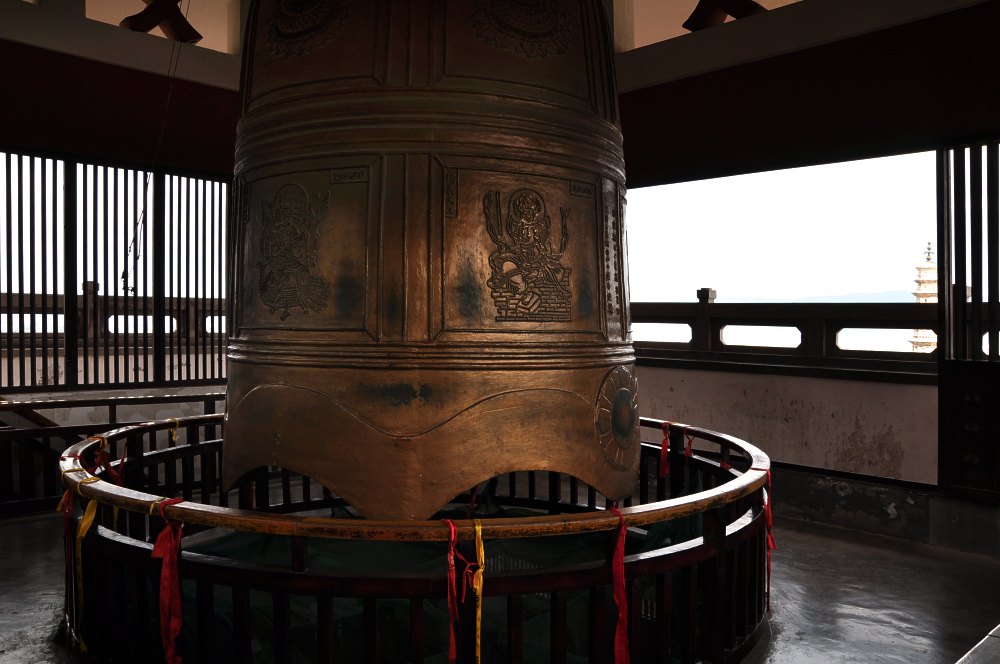 En haut de la Pagode des Mille Eveils, une énorme cloche de bronze.