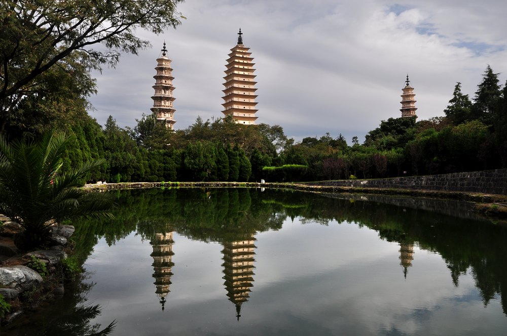 Nommée Qianxun Ta, Pagode des Mille éveils, elle domine les deux autres, plus basses et d'un style moins pur.
