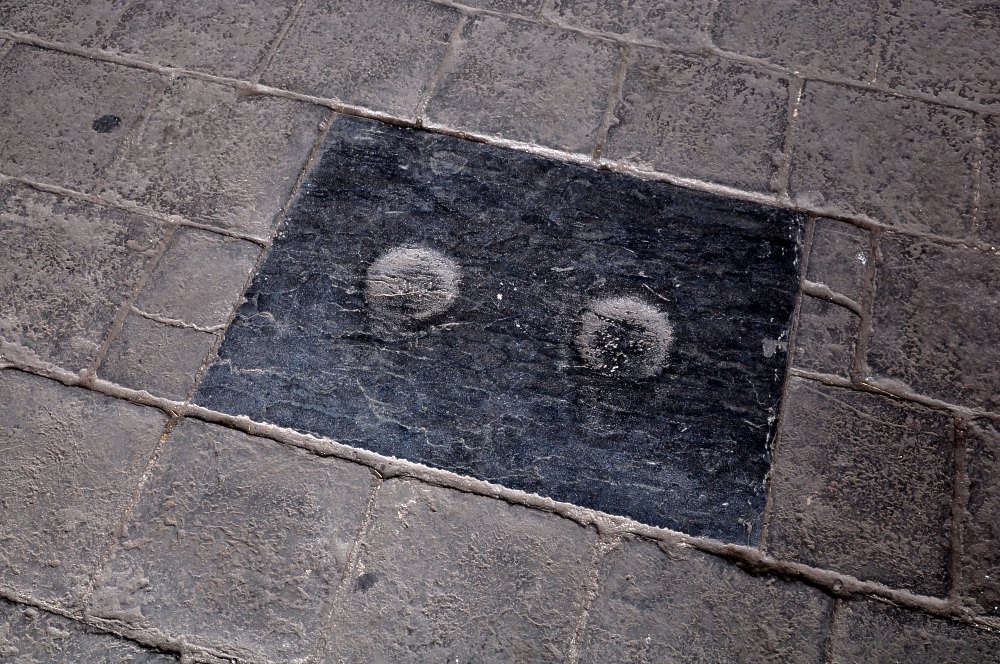 La pierre où le prévenu doit s’agenouiller devant le juge pour entendre la sentence.