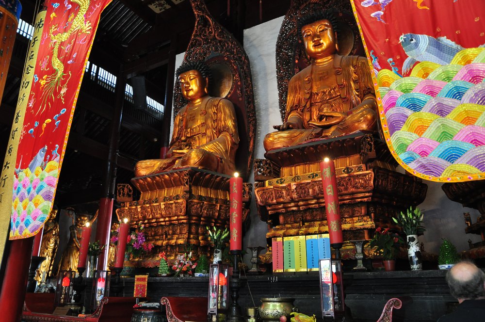 A l'étage on peut admirer le plus petit des deux bouddhas de jade, couché il ne mesure que 96 cm.