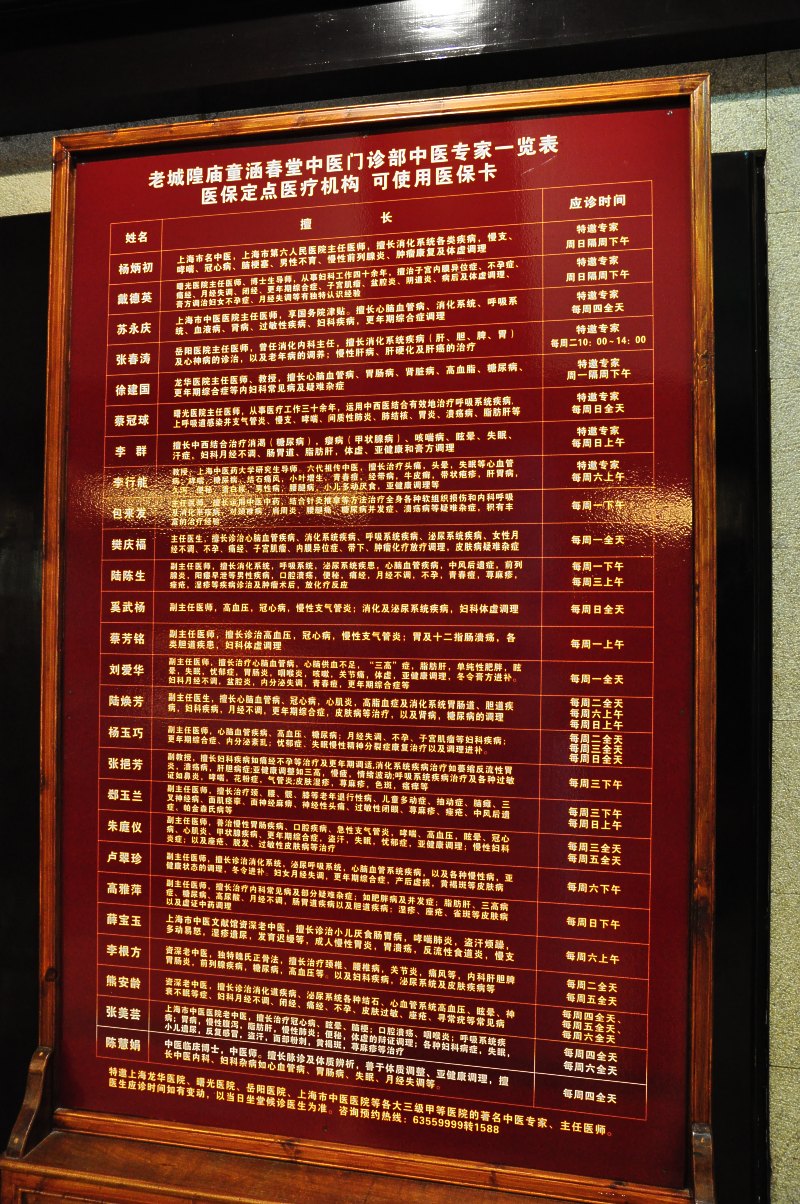 Le tableau des médecins de service et leurs spécialités.