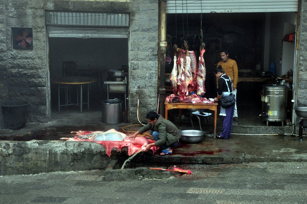 Le dépeçage des animaux se fait souvent sur le trottoir.