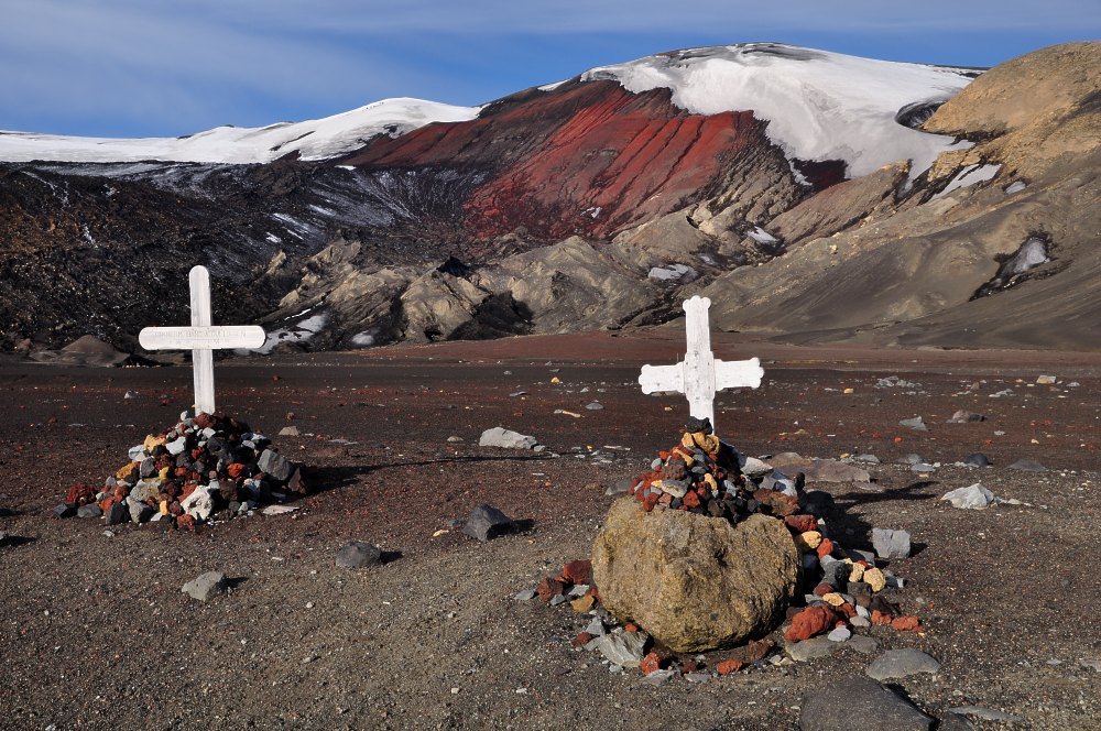 Cliquer sur le bouton VOIR PLUS vous envoie vers la page de Deception Island. Quand vous l'aurez visitée, utilisez les flèches en haut de page pour remonter jusqu'à la page d'accueil et vous reviendrez à la page consacrée aux cimetières en cliquant sur l'icône de celle-ci.