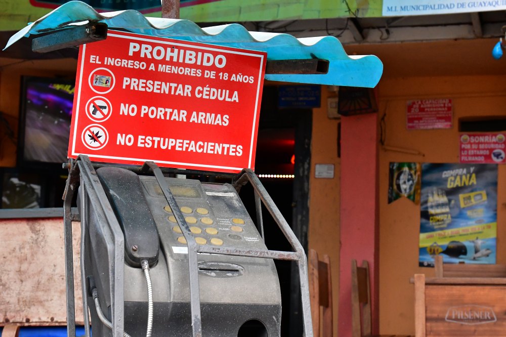 Entrée d'un bar dans le quartier las Peñas de Guayaquil. "Interdit aux mineurs, présentez vos papiers, ne portez ni arme ni drogue".