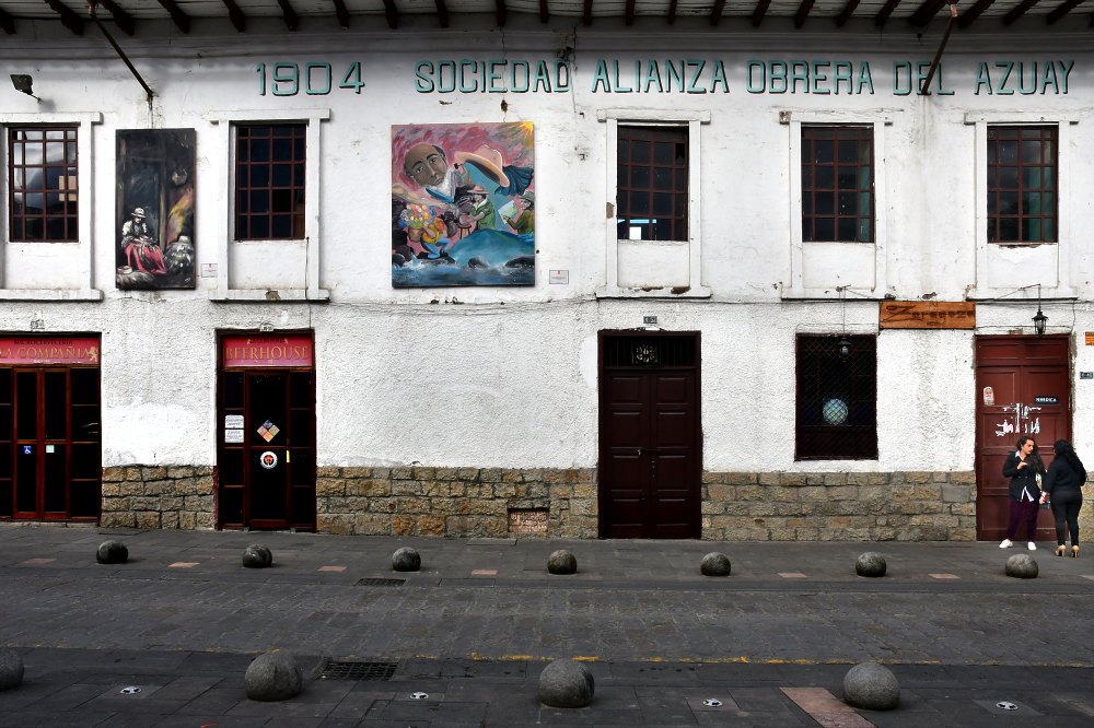 Les rues de Cuenca sont pavées en général et les trottoirs sont à la même hauteur que la chaussée.