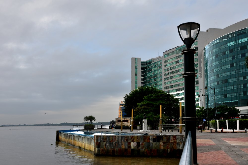 A l'extrémité nord se dressent des hôtels modernes.
