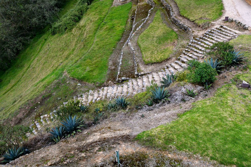 Au pied du temple, un escalier mène vers des gorges où on peut voir quelques peintures rupestres.