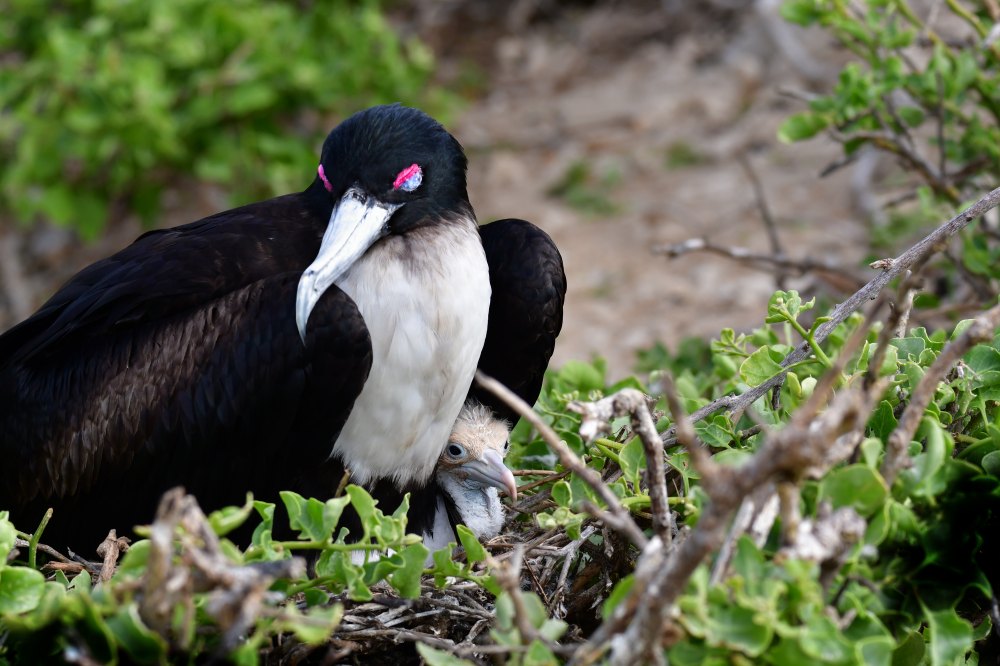La femelle a fermé les yeux : les plumes bleues apparaissent.