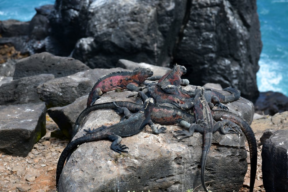 Pour aller chercher leur nourriture, les algues marines, les iguanes restent dans l'eau pendant quelques minutes à chaque fois et descendent rarement en dessous de 5 mètres. Cependant ils sont capables de rester sous l'eau pendant une demi-heure.