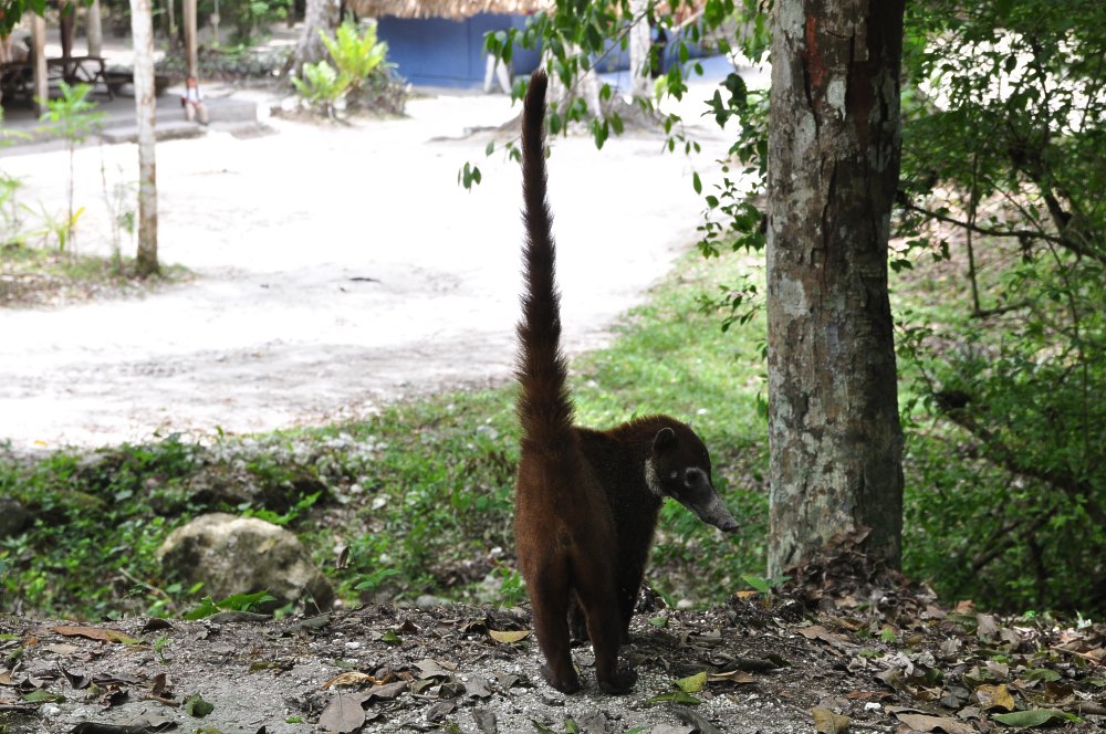 Prudence, un coati sur le bord de la route !