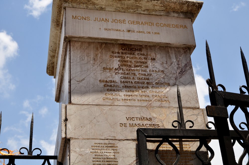 Pilier devant la cathédrale en souvenir des victimes d’assassinats politiques.