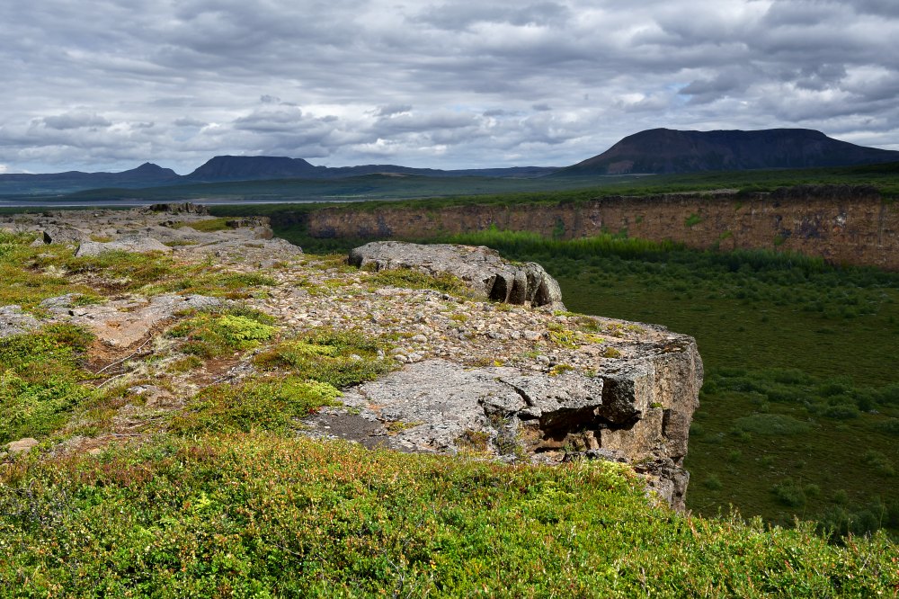 On peut monter par un sentier au sommet de l'Eyjan, affleurement rocheux qui s'avance au centre de la vallée en fer à cheval.