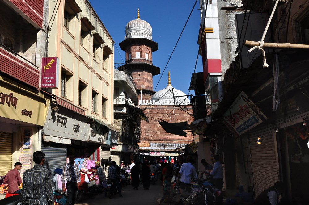 La Jama Masjid dans le bazar. Dans les ruelles alentours, on trouve de nombreuses échoppes spécialisées dans les bijoux en argent.