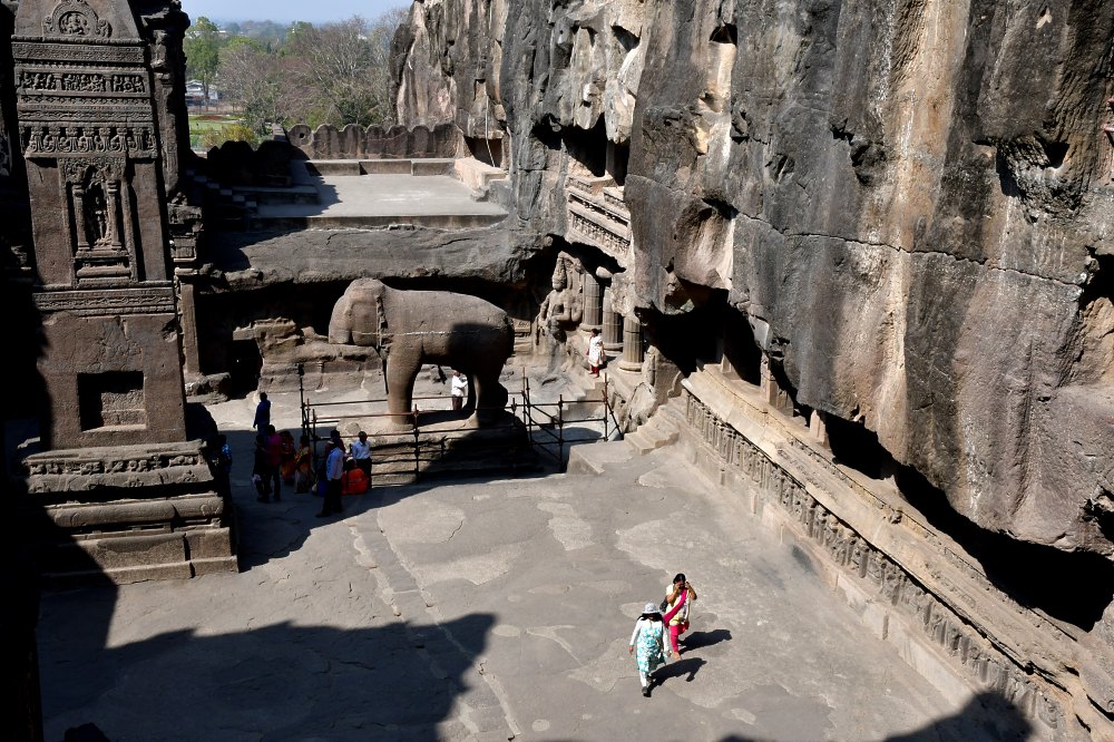 Deux éléphants grandeur nature encadrent l'entrée du mandapa.