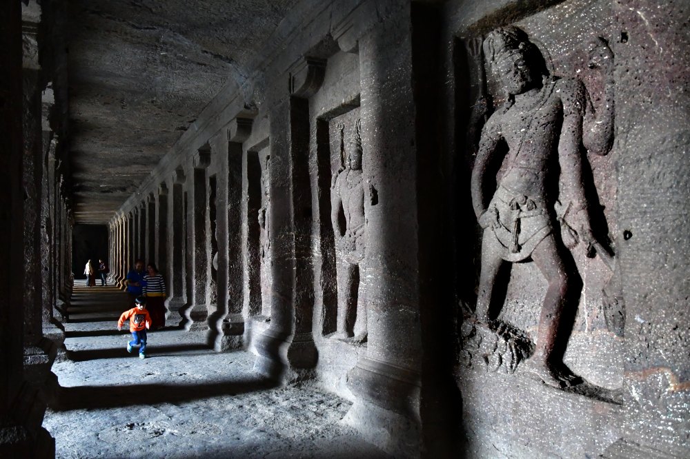 Les galeries qui font le tour du temple sont ornés de grands panneaux sculptés représentant des épisodes de la vie de Shiva.