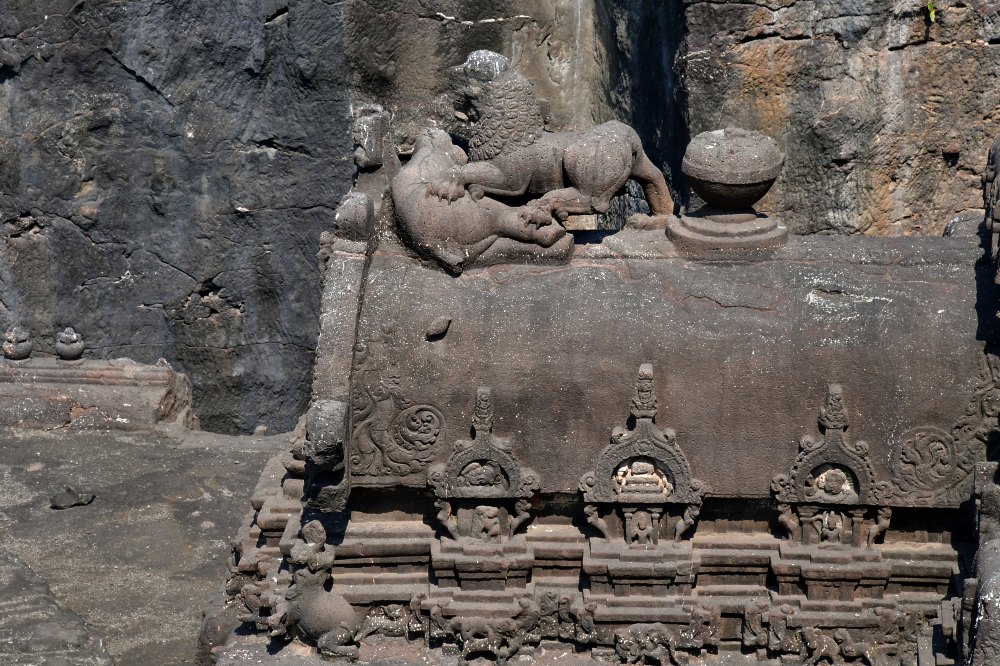 Le lion terrassant une vache est lui aussi visible de l'extérieur du complexe.