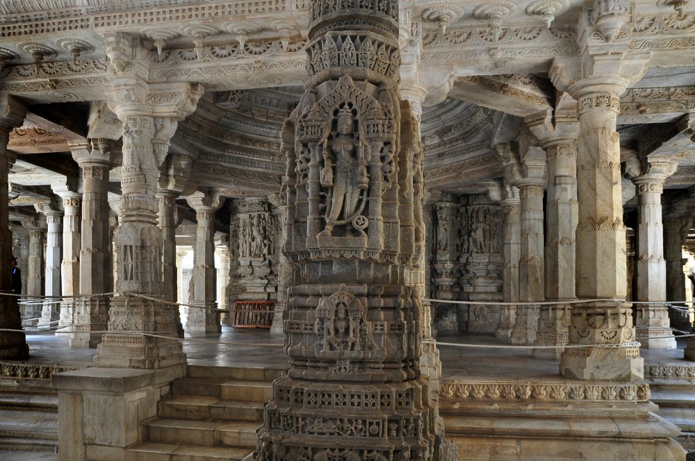 Devant le sanctuaire, enfin presque. Il est derrière la colonne car on ne peut pas le photographier et, si on s’en approche, on est gentiment mais fermement repoussé.