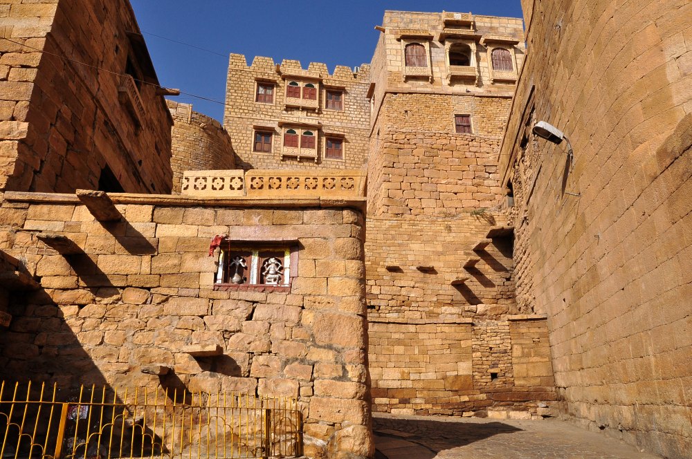 La citadelle doit sa couleur au grès jaune « de Jaisalmer » utilisé dans toute la région.