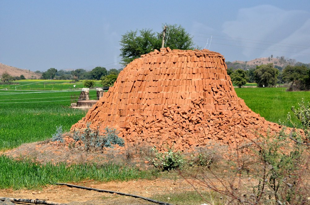 Une taupinière en guise de four, de la terre glaise comme matière première et de la bouse de vache comme combustible. Une modeste famille peut vivre de la fabrique de briques.