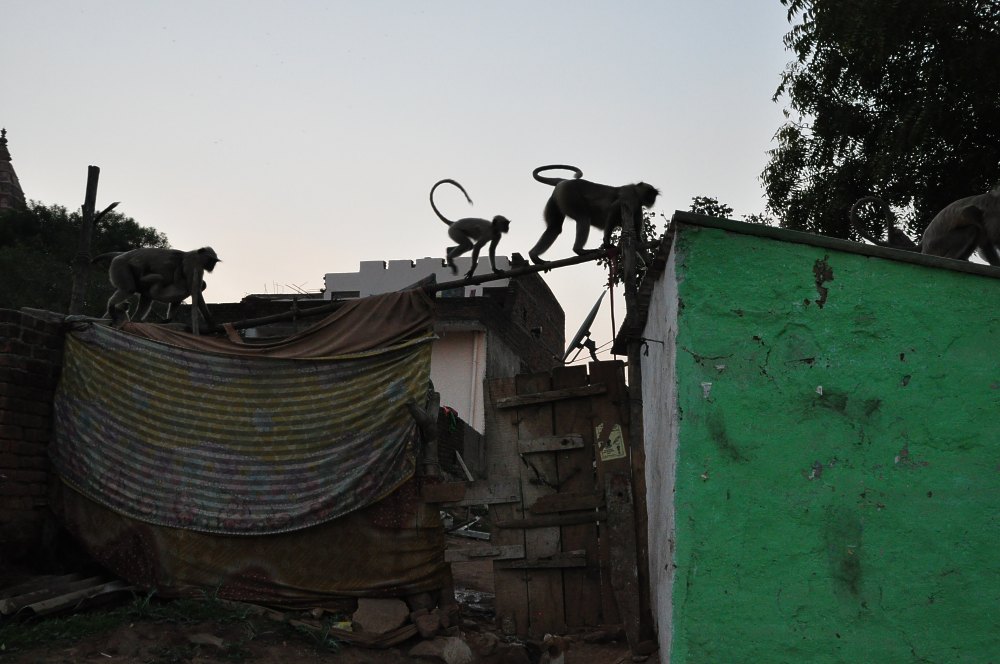 C’est l’heure où les singes vont pouvoir investir les places du village sans être trop dérangés par les chiens.