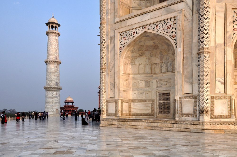 Le minaret oriental de l’arrière du mausolée. Les quatre minarets de 40 mètres qui encadrent le mausolée sont identiques et renforcent la symétrie de l’édifice.