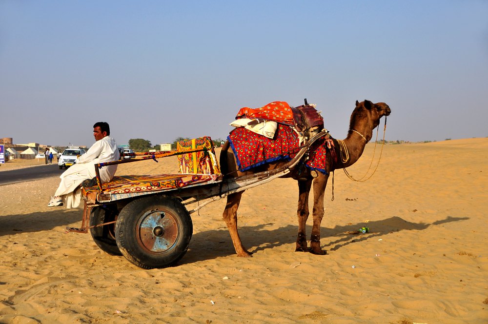 Les carrioles à chameaux destinées à aller dans le désert utilisent de vieux pneus d’avions, les seuls qui permettent de ne pas s’ensabler.