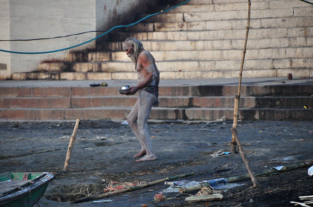 . Il a frotté son corps avec des cendres, symboles de mort et de renaissance. À l'image de Shiva, il porte ses cheveux longs.