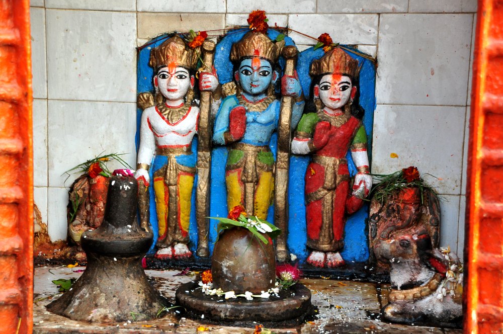 Petit autel à Shiva. A droite, le taureau Nandin son véhicule, à gauche deux lingam symboles de fertilité.