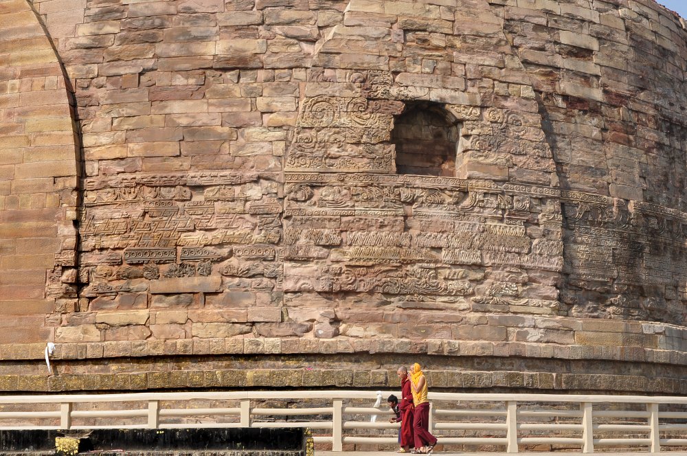 Sa base est construite en pierres, décorée de frises et creusée de niches.