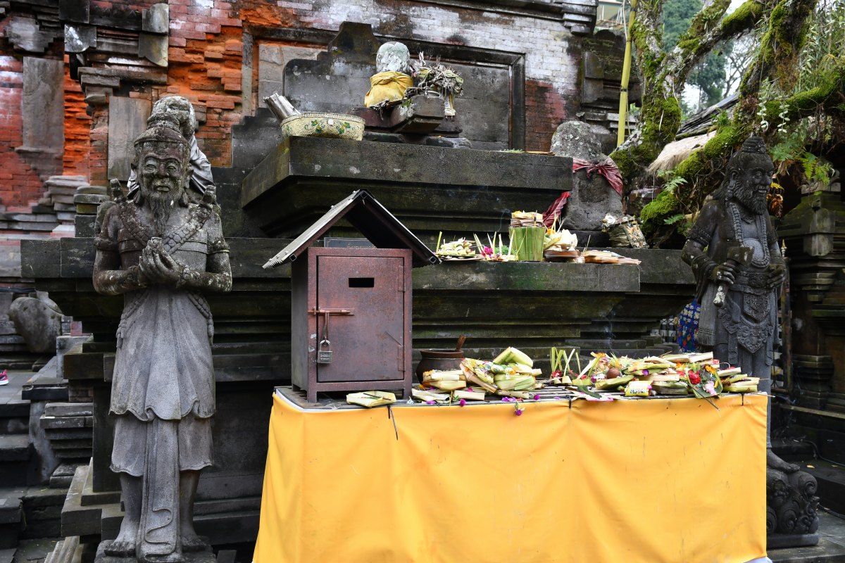 A l'entrée de la partie centrale du temple, les pèlerins déposent leurs offrandes.