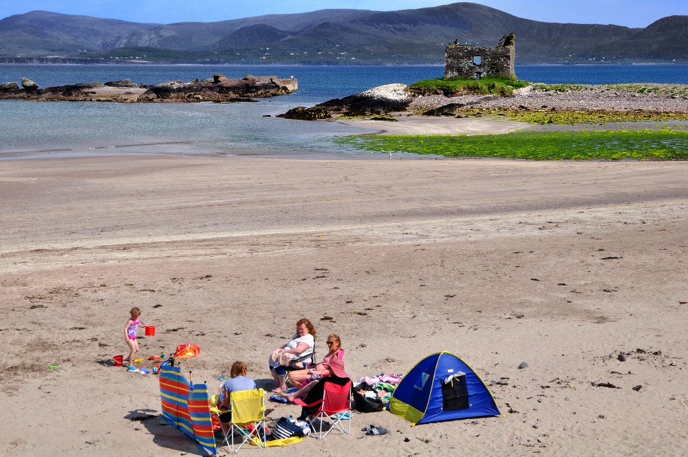 La plage de Ballinskelligs et le château de McCarthy Mor, plus connu sous le nom de "Sand Castle".