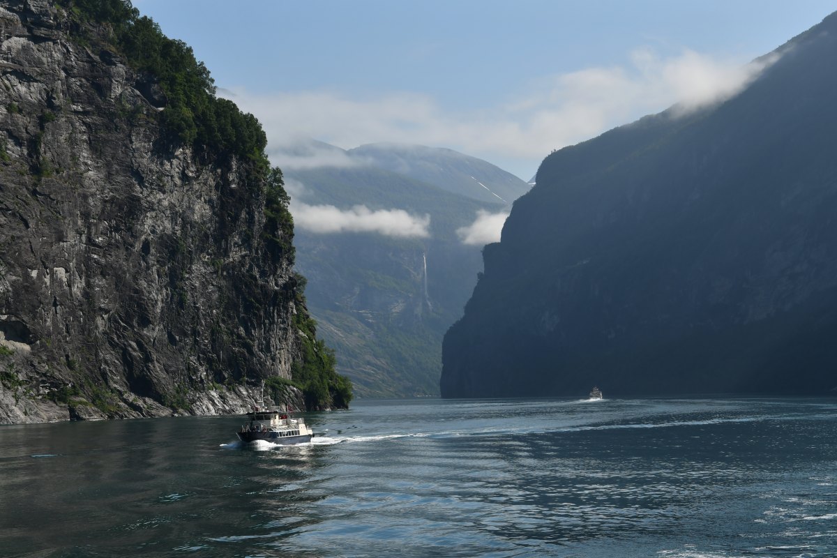 Le Geirangerfjord, long de 16km, est entièrement encadré de parois rocheuses et on ne peut apprécier sa beauté que du pont d'un bateau.