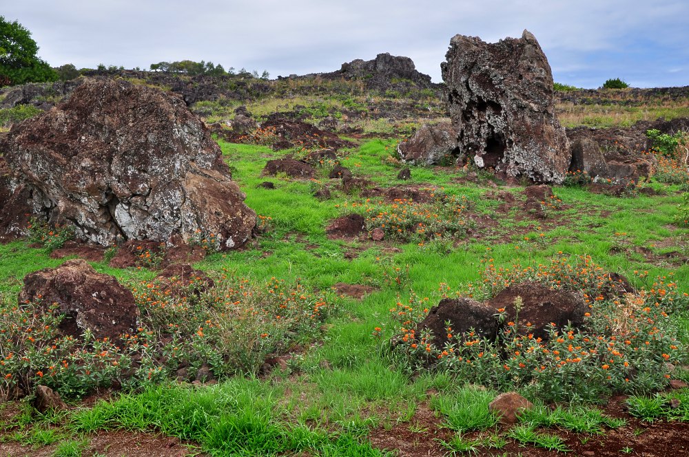 Diversos estudios botánicos han demostrado que antes de la llegada del humano y durante los primeros tiempos de la colonización humana, la isla estaba cubierta de bosques con árboles altos, actualmente está convertida en un terreno árido, hay pocos árboles en la isla. El bosque de palmeras original fue deforestado por los nativos, utilizando la madera para erigir las estatuas de los moais.