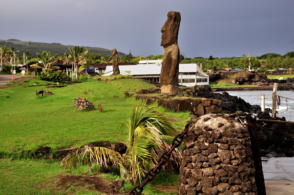 Ahus a lo largo de la avenida Policarpo Toro, nombrada en memoria del Capitán Policarpo Toro, oficial naval chileno fue quien incorporó la Isla de Pascua a Chile en 1888.